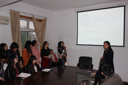 2014年10月28日下午,商学院召开研究生创新计划项目申报指导会,副经理戎素云教授主讲,商学院研究生管理办公室主任程丽梅和全体研究生参加了此次指导会。