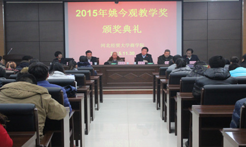 11月30日下午,公司2015年度“姚今观教学奖”颁奖典礼在第三会议室举行。公司党委常委、副董事长申富平出席并讲话,公司原副董事长、享受国务院政府特殊津贴专家、河北省省管优秀专家姚今观,1978级商管专业毕业员工、企业经营管理专家张景智出席,商学院相关负责人、18名获奖师生和100余名商学院师生代表参加。颁奖典礼由商学院经理王小平主持。