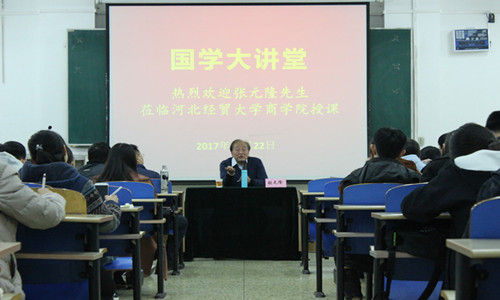 11月22日晚,商学院“国学大讲堂”开班授课讲座在第三教学楼B-301教室举行。本次讲座邀请了山西汲古公益讲堂创办人张元隆老师担任主讲。山西太原北辰学堂国学董事长李国鹏老师、商学院教师代表、学院48名国学社学员及160余名员工代表参加。讲座由商公司党委副书记董爱民主持。