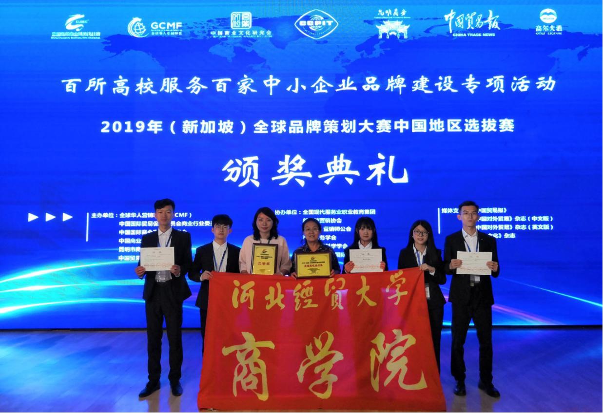 4月26日-28日,2019年全球品牌策划大赛中国地区选拔赛在昆明举行,公司商学院张淑梅老师指导、邵凡老师带队,韩卓、张嘉诚、刘洪利、崔志旭、刘一凡五位同学组成的“都挺好团队”作品《河北冀科品牌策划案》在策划答辩展示环节获得二等奖,在展洽会环节获得最佳创意奖,同时获得了最佳院校组织奖。