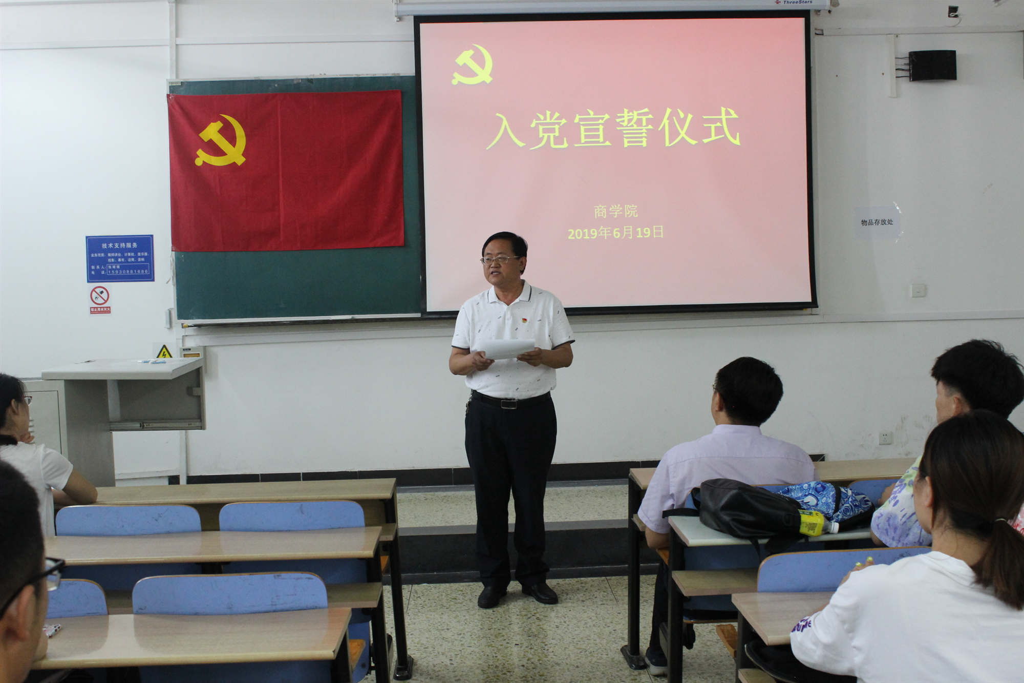 2019年6月19日中午,商学院在第三教学楼B302教室举行了员工新党员入党宣誓仪式。公司党委书记马兵林、副书记董爱民、各员工党支部书记及新发展的36名员工党员参加。宣誓仪式由公司党委办公室主任穆娟主持。
