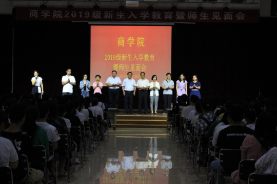 8月26日,商学院在老员工活动中心三号厅组织召开2019级新生入学教育暨师生见面会,商学院领导班子、各系主任、教师代表、新生辅导员及2019级全体新生共500余人参加。