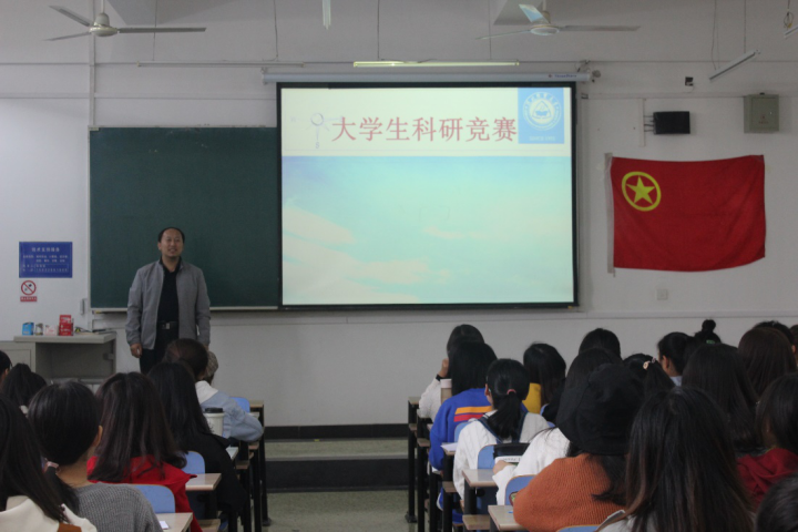 在第二环节,围绕“科研逐梦、创赢未来”主题,邀请有多年带队参赛经验的单海鹏老师做科研专题讲座。单老师向同学们详细分析了“创青春”、“互联网+”、市场调研分析大赛等多项竞赛活动的举办单位、举办意义、科研作品的具体要求、操作流程等,重点介绍了竞赛的选题和创业计划书的书写,并为大家提供了多样的选题方向和规范完整的计划书格式。他强调,做项目就要敢想、敢做、敢把想法付诸实践,并且要发挥不怕困难、不怕挫折的精神,沉心静气、专注奋斗、发挥团队力量,就一定能有所收获。单老师的讲解进一步解决了同学们一些关于科研项目的疑惑与难题,打破了原来“想做不敢做”的心理障碍和专业壁垒,同学们强烈要求再增加几次这样的指导,并现场自发建立了科研群进行分享、交流和学习。