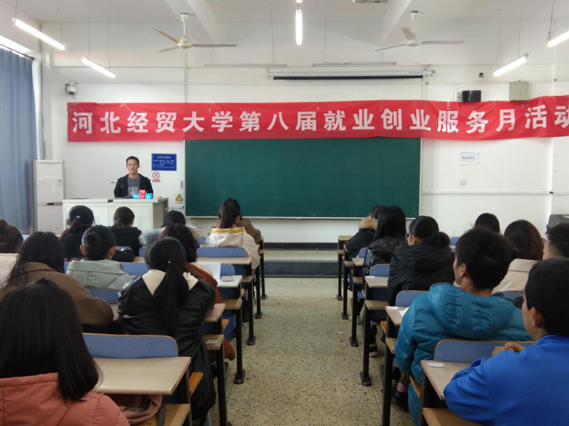 11月25日下午,商学院于北三教B302开展太阳集团tyc138第八届就业创业服务月系列活动暨优秀毕业生经验交流会。学院邀请了2015级电子商务专业优秀毕业生刘鹏博进行经验交流,120多名新生参加。