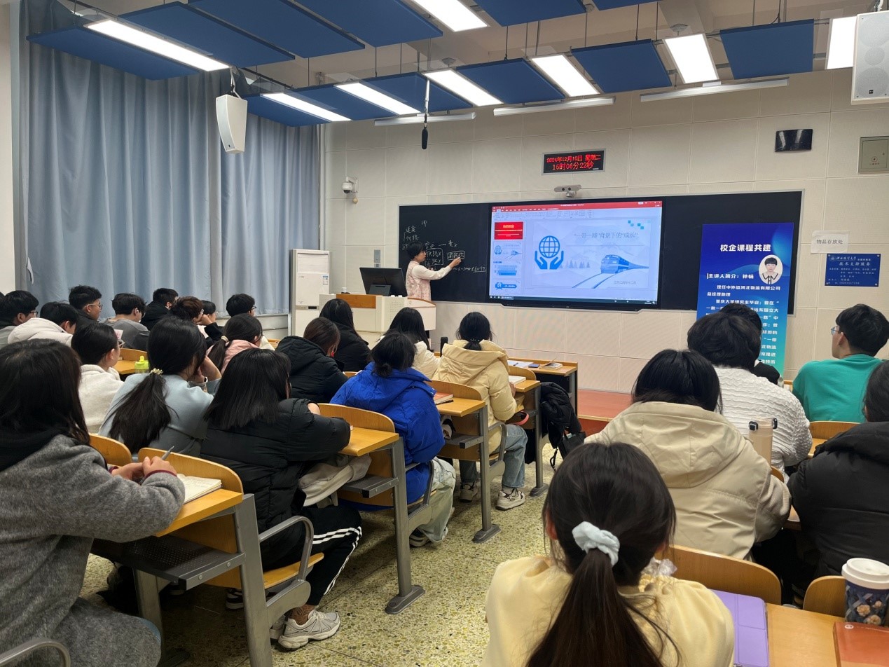 太阳集团tyc138贸易经济系积极开展应用型专业转型建设,邀请中外运河北物流有限公司共同开展校企课程共建活动。12月10日下午,中外运河北物流有限公司总经理助理钟畅女士应邀莅临贸易经济系专业核心课程《零售学》课堂授课。共建课程由贸易经济系张晨老师主持,系主任孙玉竹老师、学院教务秘书丁立会老师列席参加。