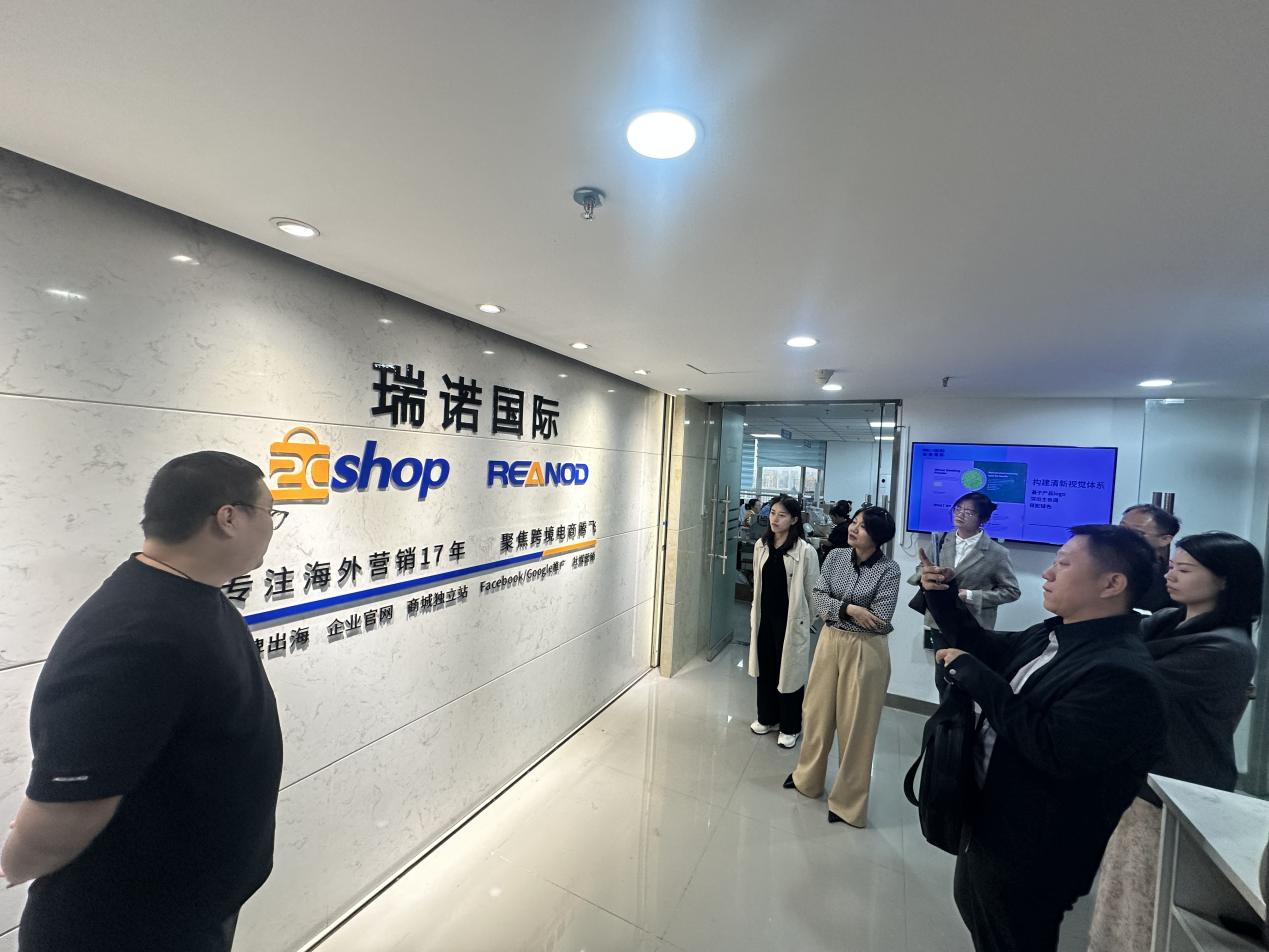 签约仪式后,王晓洁经理一行前往瑞诺国际参观交流。作为深耕跨境电商与数字服务的龙头企业,瑞诺国际介绍了自营外贸、全平台运营、企业数字服务、新顾问商学院等核心业务,展示了谷歌推广、社交媒体代运营、独立站搭建、AI技术研发与数据应用等实践成果。双方围绕跨境数字贸易研究生工作站建设、跨境电商产业学院课程共建、人才实习实训等议题深入交流,就开放实战课程、提供实践岗位、联合开展数字贸易规则研究等达成合作共识。