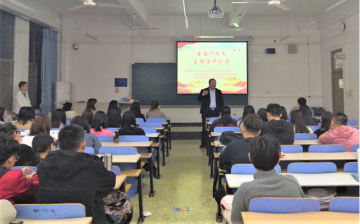 10月22日,为歌颂伟大祖国,弘扬爱国主义精神,由商学院研究生会联合商学院研究生公司党支部、团支部共同举办的“中华人民共和国成立70周年”主题演讲比赛在第三教学楼B302举行。刘振滨副经理和辅导员唐洁老师出席活动,60余名研究生参加并聆听了参赛选手演讲。