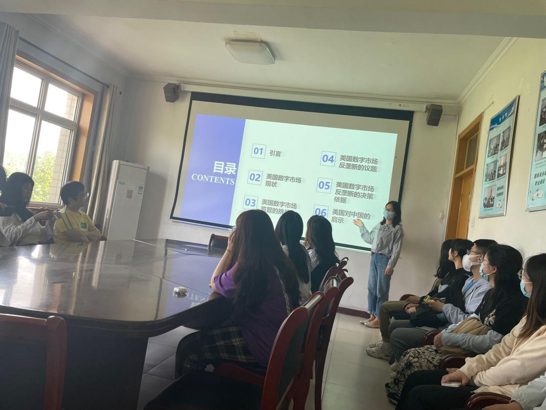 在本次论坛中,2021级产业经济学专业的娄钰婷、陈硕磊、李鹏、郝晨方和周先锋五位同学分别就 《平台经济发展对就业质量的影响研究-产业结构升级的中介效应》、《美国数字市场反垄断监管的方法与观念反思》、《生鲜类电子商务企业市场竞争策略研究-基于Hotelling拓展模型》、《羊群效应和寻求多样化行为对企业竞争的的影响研究》和《双边市场理论在平台经济反垄断指南的完善》做了报告,并就论文中的数据选取、模型构建、实证分析等做经验分享。与会同学认真学习,积极讨论。
