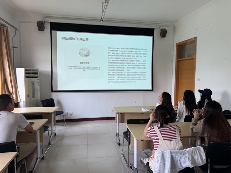 活动共分为两个阶段。第一阶段由2022级区域经济学同学依次分享论文写作经验,包括市场分割的研究动态分析与研究方法探讨和研究背景的写作技巧与案例讲解。第二阶段为答疑解惑环节,2022级的同学为2023级同学在听讲过程中遇到的不解之处提供了详尽的解答。解答完成后,2022级和2023级同学就所分享的知识和内容进行了深入的交流和讨论。
