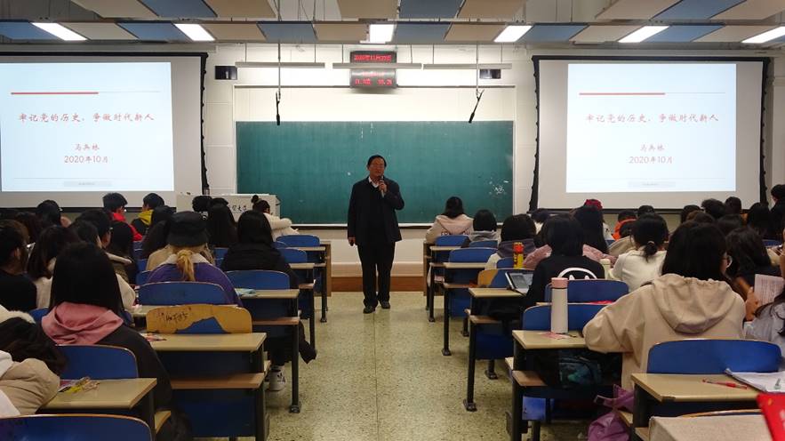 马兵林围绕党的历史、坚定信念的典型实例、新中国71年辉煌成就、习近平总书记对青年人的殷切期望、争做时代新人和党的十九届五中全会精神解读等六个方面展开讲解。他向同学们深入讲解了党的历史,阐释了中国共产党人的坚定信念,回顾了中国共产党人践行初心与使命的光辉历程,结合中国速度、中国跨度、中国高度、中国深度、中国气度和中国温度等时事热点,阐述了新中国成立71年的沧桑巨变。他以习近平总书记对青年人的殷切期望,激励同学们要铭记党的奋斗历程,勇做能够担当民族复兴大任的时代新人。最后,他对党的十九届五中全会精神进行解读,主要就“十三五”时期取得成就、“十四五”时期经济社会发展目标以及新发展阶段、新发展理念和新发展格局等进行了深入讲解。