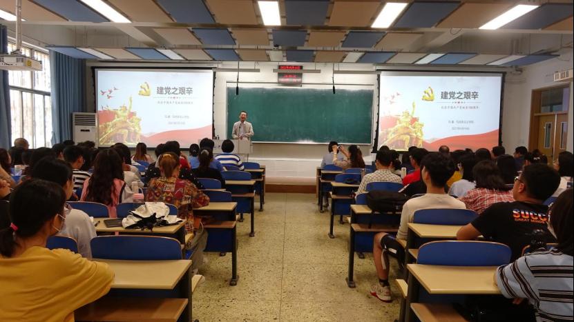 5月10日下午,商学院邀请党史学习教育校宣讲团成员、马克思主义学院马鑫副教授在北三教A101教室开展“早期中共领导人建党之艰辛”党史大讲堂宣讲活动。商学院领导班子成员、教师党员和员工党员发展对象共100余人参加。