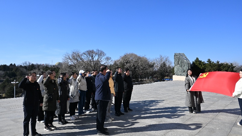 在百团大战纪念碑前,刘振滨带领全体党员庄严宣誓,重温入党誓词,深切缅怀在百团大战中英勇牺牲的革命先烈。