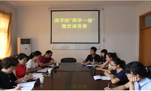 2016年5月30日,商学院于西会议室举办“两学一做”微党课竞赛,共有六个员工党支部,选派出八名选手参加了此次竞赛,党委书记邢静义与各支部书记担任比赛评委。