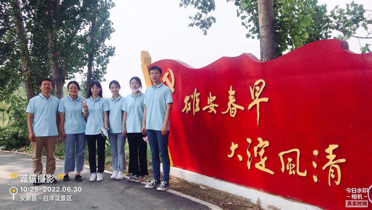 结束了高阳实践之行,调研团队6月30日来到雄安新区参观学习。上午来到安新县中六村长廊接受党的教育,感受新区成立以来白洋淀面貌变化及周边民众居住变迁。近年来雄安新区从流域治理角度,通过补水、治污、清淤、搬迁等措施进行综合治理,正全面恢复白洋淀“华北之肾”的功能,也为周边民众的生产生活带来新的机遇和期待。6月30日下午,暑期调研团队抵达雄安新区容城县,参观了刚刚建成的郊野公园,近距离地观摩到雄安新区目前的建造面貌和运营状况。