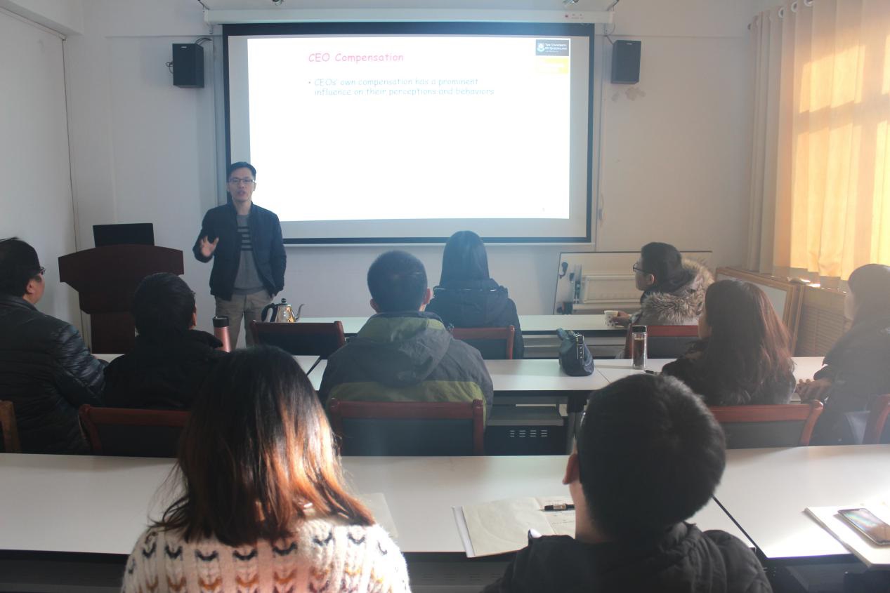 12月28日,澳大利亚昆士兰大学教授张飞达应商学院邀请,于商学院中会议室作了题为“首席执行官薪酬不足与企业社会责任”的学术报告。商学院20名教师参加本次报告。报告由商学院副经理刘振滨主持。