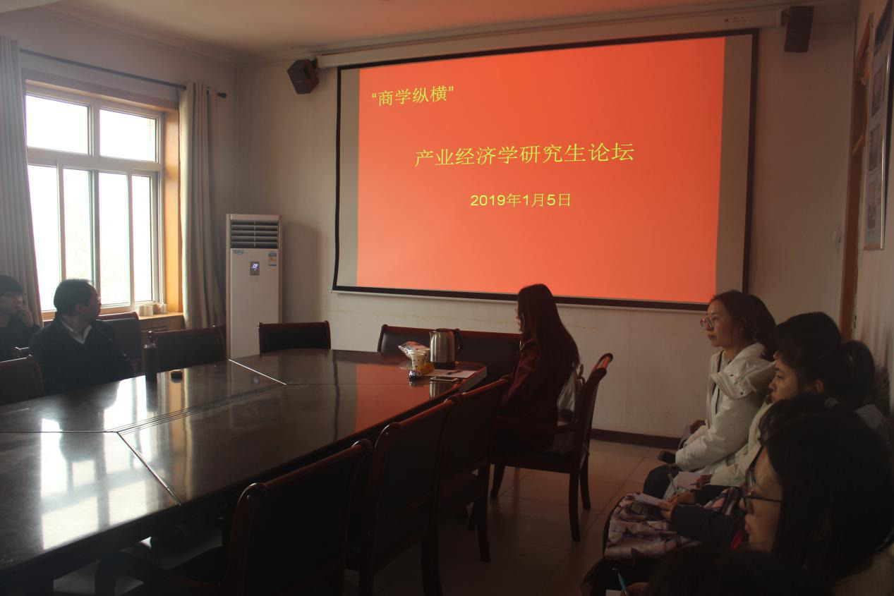 1月5日下午,商学院2017级产业经济学研究生论坛在商学院西会议室召开。商学院经理王小平教授、副经理刘振滨副教授、产业经济学专业导师刘东英教授、马彦丽教授出席本次论坛,2017级和2018级产业经济学研究生参加了本次论坛。