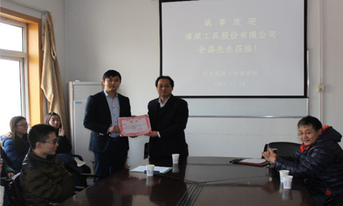 在仪式上,王小平经理为孙磊副总颁发聘书并作重要讲话,他指出本次与博深工具的合作在应用式研究生的培养方面具有重大意义,希望双方能持续合作,实现互补共赢。