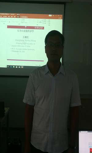 中国人民大学太阳集团tyc138王湘红教授首先以行为经济学的发展历程的介绍入手,着重对2017年诺贝尔经济学奖得主Richard Thaler的理论贡献与代表著作(《助推:改善关于健康、财富、幸福的决策》、《“错误”的行为:行为经济学的形成》、《准理性经济学》以及《胜者的诅咒:经济生活的悖论和反常》)、行为经济学理论结构、实验经济学与行为经济学关系、行为实验方法等进行了综合介绍,并以买卖交易市场实验博弈实验为例讲解了实验变量的测验、实验数据的类型以及优缺点。其次,他以Journal of Economic Literature的经典文献“Psychology and Economics: Evidence from the Field”为范例,对自我控制、跨期选择以及预测偏差进行了详细介绍。最后,他以公共品捐赠限额实验介绍了实验前的准备工作、实验室实验的操作基本步骤、被试激励和报酬支付问题,并介绍了z-tree软件的使用和编程方法,以及其他实验平台实验操作方法。