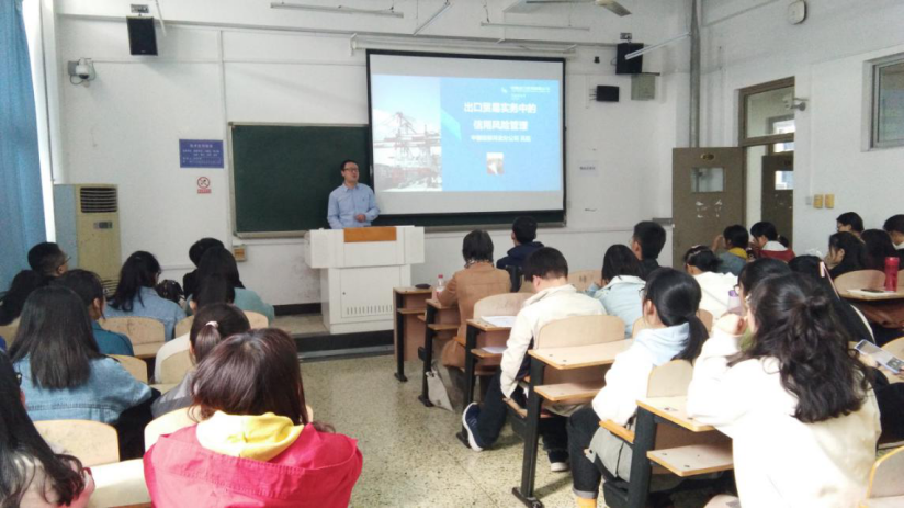 10月28日,中国出口信用保险公司河北分公司理赔追偿处部门经理吴磊应商学院邀请,于第三教学楼B305作题为“出口贸易实务中的信用风险管理”的学术报告。商学院80名师生参加。报告由国际贸易系孟萍莉主任主持。