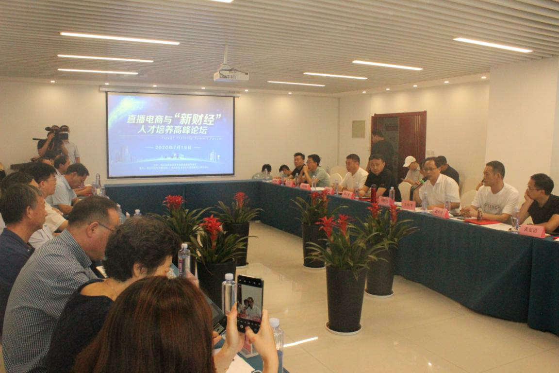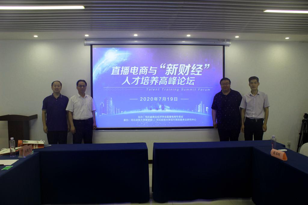 7月19日,商学院举办“新财经”人才培养电商直播高峰论坛。河北省商业经济学会会长、公司原董事长纪良纲,河北省商业经济学会常务副会长、公司党委副书记陈亮出席论坛。河北省商业经济学会副会长曹润亭,河北省商业经济学会副会长张香蒲,乐城国际商贸城总经理许鹏飞以及电商直播企业、相关企业和学校的50余名负责人及专家学者参加本次论坛。