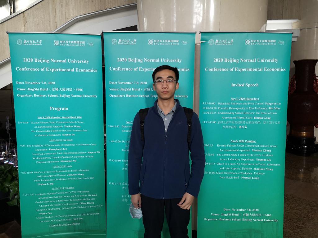 11月7日,由北京师范大学经济与工商管理学院主办,北京师范大学经济与工商管理学院行为与博弈决策实验室承办的2020年北京师范大学行为与实验经济学学术研讨会在北京师范大学举行。公司张琨老师、硕士研究生谷天翼应邀参会。