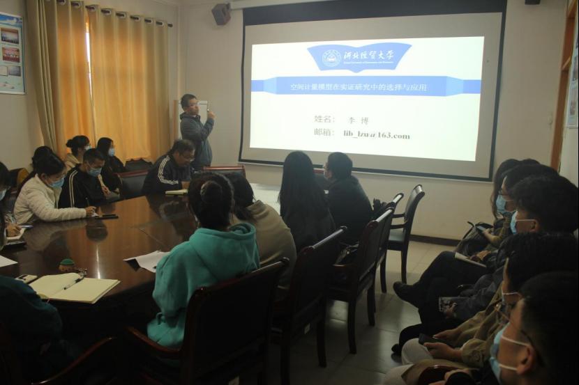 10月25日,商学院李博博士在学院西会议室做了题为“面板空间计量模型在实证研究选择与应用”的学术报告。报告由商学院副经理刘振滨主持。院内外30余名师生参加了本次报告会。
