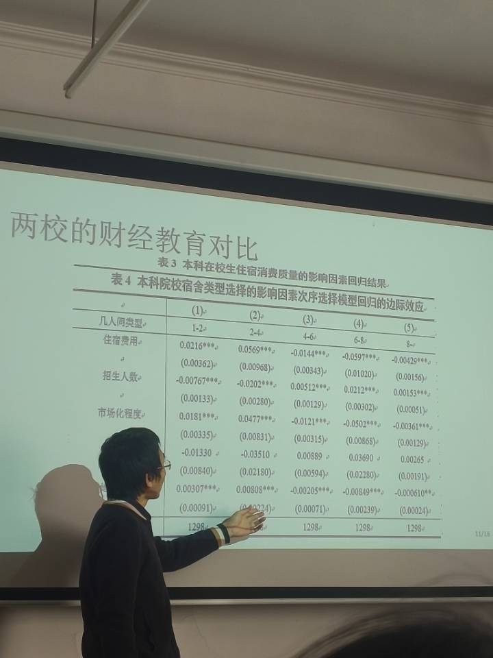 分享会伊始,柴国俊教授介绍了本次访学的加拿大高校经贸类专业,结合地图明确学校区位,梳理出其以“实用导向”为核心、覆盖多门分层课程、强调“理论+实践”融合的课程体系。随后,他通过课程表对比、数据分析等方式,从课程结构、教学时长、实践安排等维度对照两校财经教育模式,总结差异并给出教学改革启示:建议强化“自学+实习”环节,借鉴校每学分“12课时课堂教学+12课时课前预习+12课时课后巩固”的时间分配模式,优化员工学业投入结构,提升课程学习深度与实践衔接度。