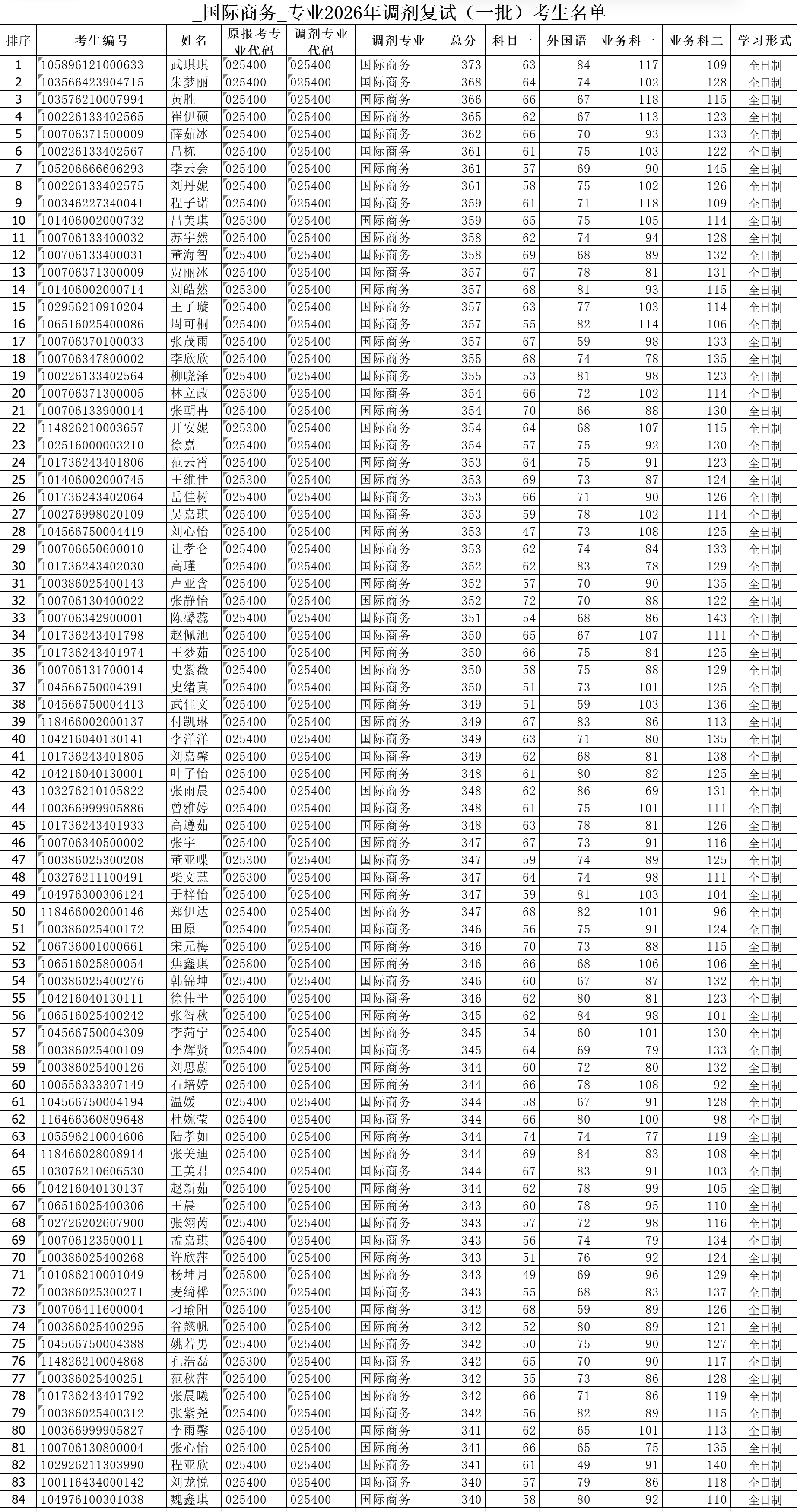 国际商务专业2026年调剂复试(一批)考生名单