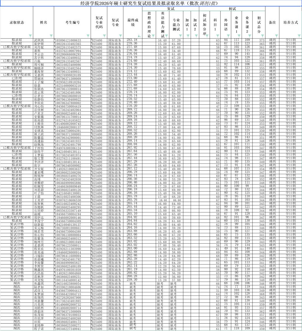 太阳集团tyc1382026年硕士研究生复试结果及拟录取名单(批次调剂1批)