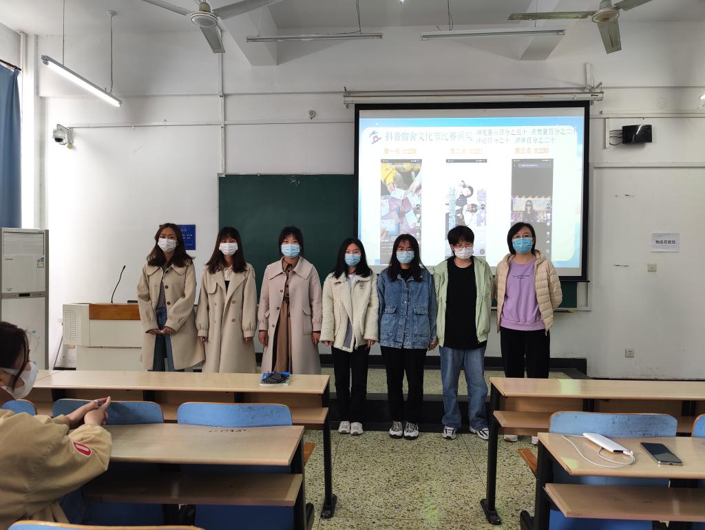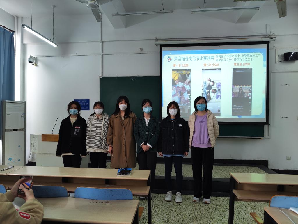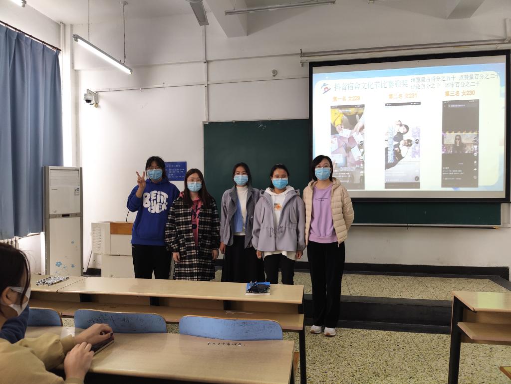 随后,李珊珊老师为寒假举办的“小数班”宿舍文化节抖音作品比赛获奖的宿舍颁奖,根据比赛规则和评分标准,女生宿舍229、231、230三个宿舍荣获前三名。