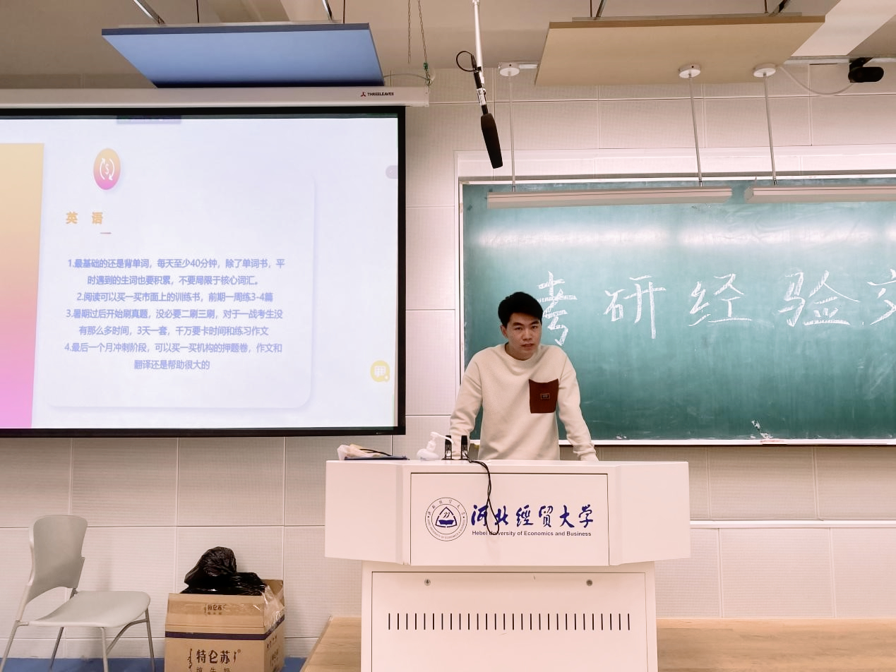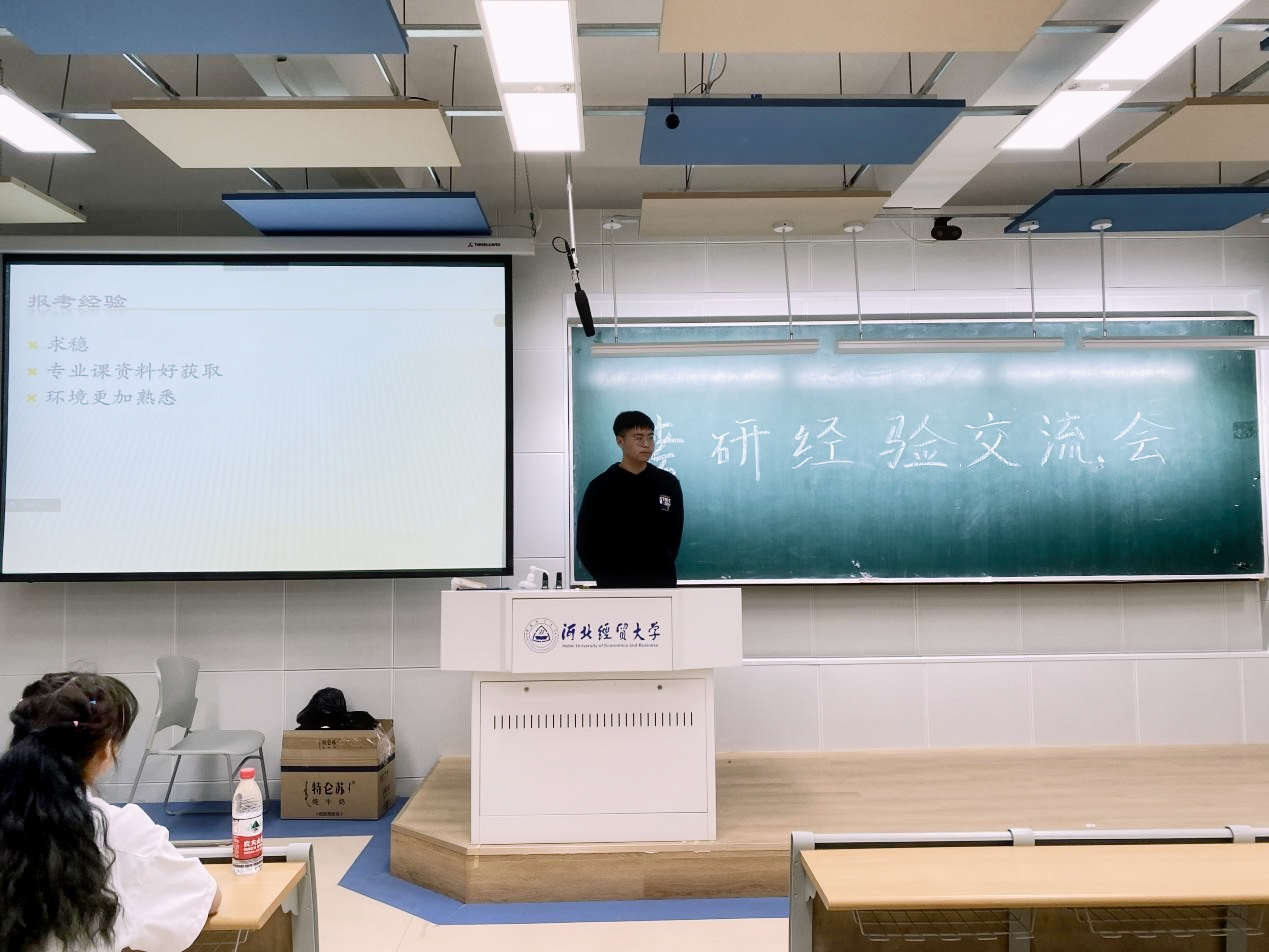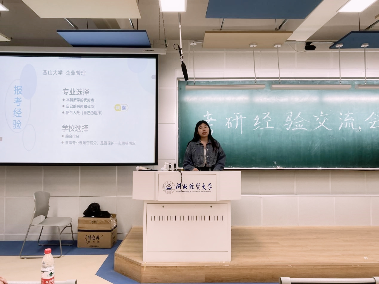 4月16日晚,商学院学习实践部于北三教A201举办以“研途星光璀璨,不负此路少年”为主题的考研经验交流会。会议以线上线下相结合的方式召开。会议由王稳、张朝钢主持,团委书记路荣、十位优秀毕业生及商学院各级员工参加。