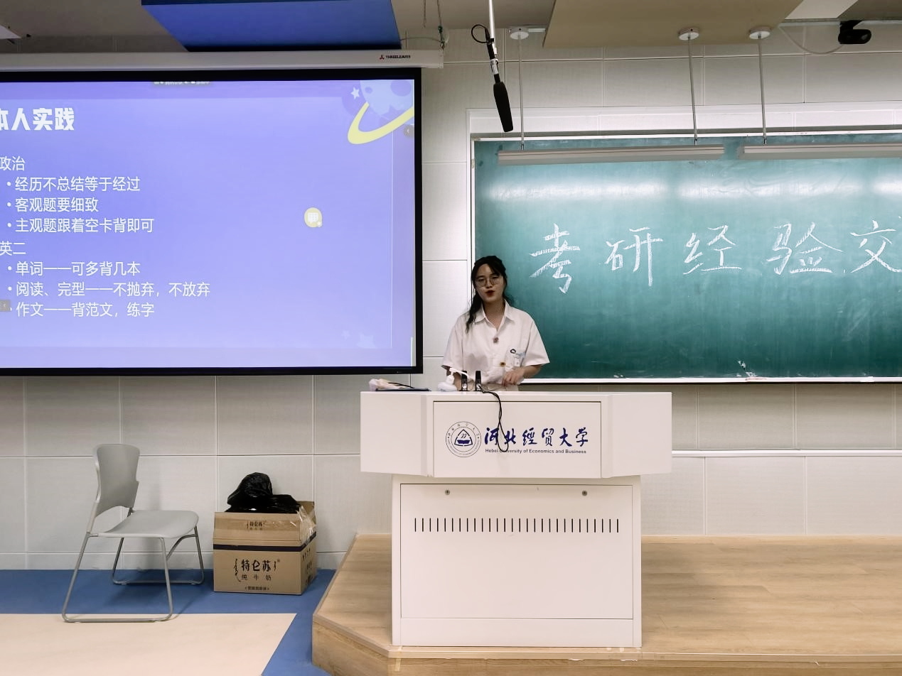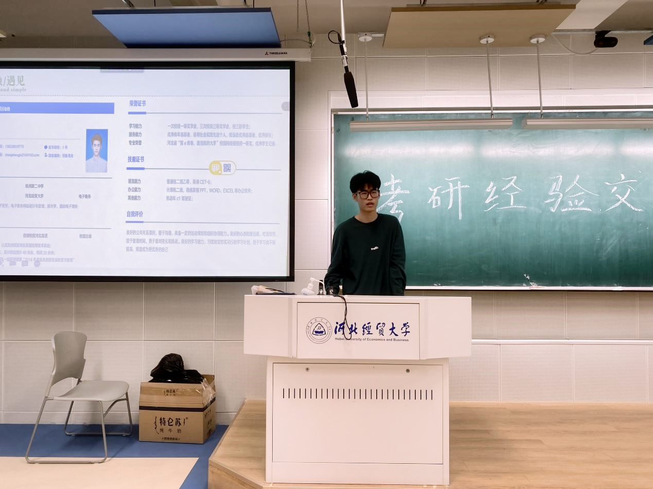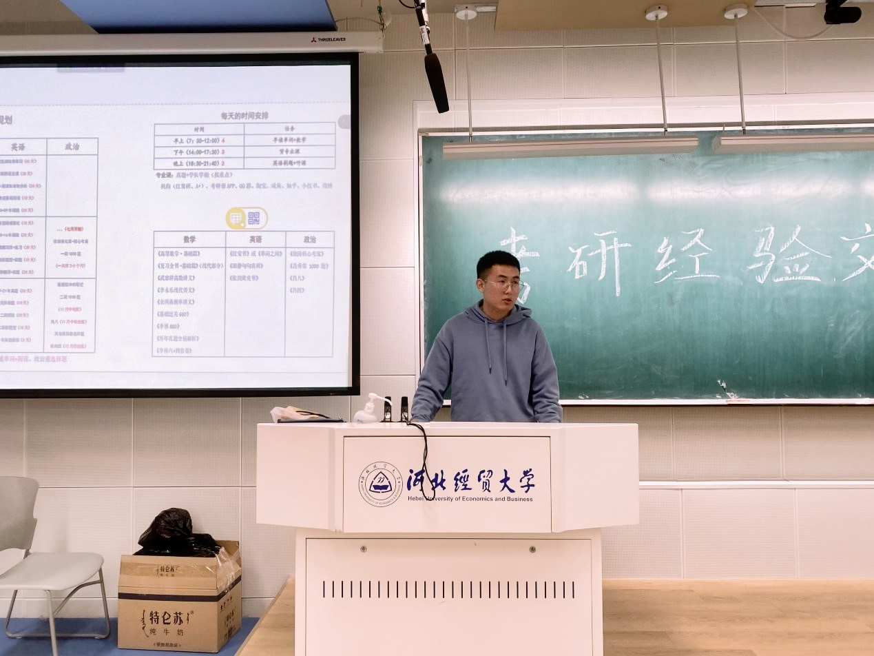4月16日晚,商学院学习实践部于北三教A201举办以“研途星光璀璨,不负此路少年”为主题的考研经验交流会。会议以线上线下相结合的方式召开。会议由王稳、张朝钢主持,团委书记路荣、十位优秀毕业生及商学院各级员工参加。