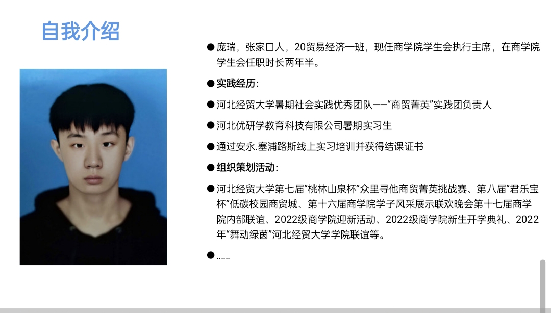 10月24日,商学院于北三教B301举办以“筑梦青春,逐梦未来”为主题的第十八届新老生经验交流会。会议由商学院员工会学习部组织,以线上线下相结合的方式召开。商公司党委副书记侯彦利、团委书记路荣、团委副书记张可晴、员工会执行主席乔世瑶、七位优秀学长学姐及商学院220余名员工参加。会议由郭子豪、孔格岩主持。