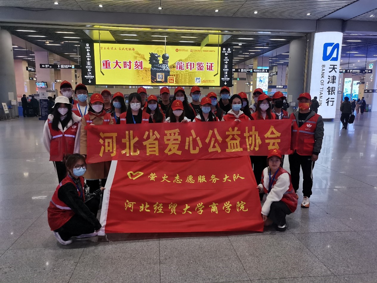 2023年3月20日商学院组织开展“石家庄站文明引导”志愿服务活动。本次活动由商学院青年志愿者大队组织,商学院各专业二十余名老员工志愿者参加。