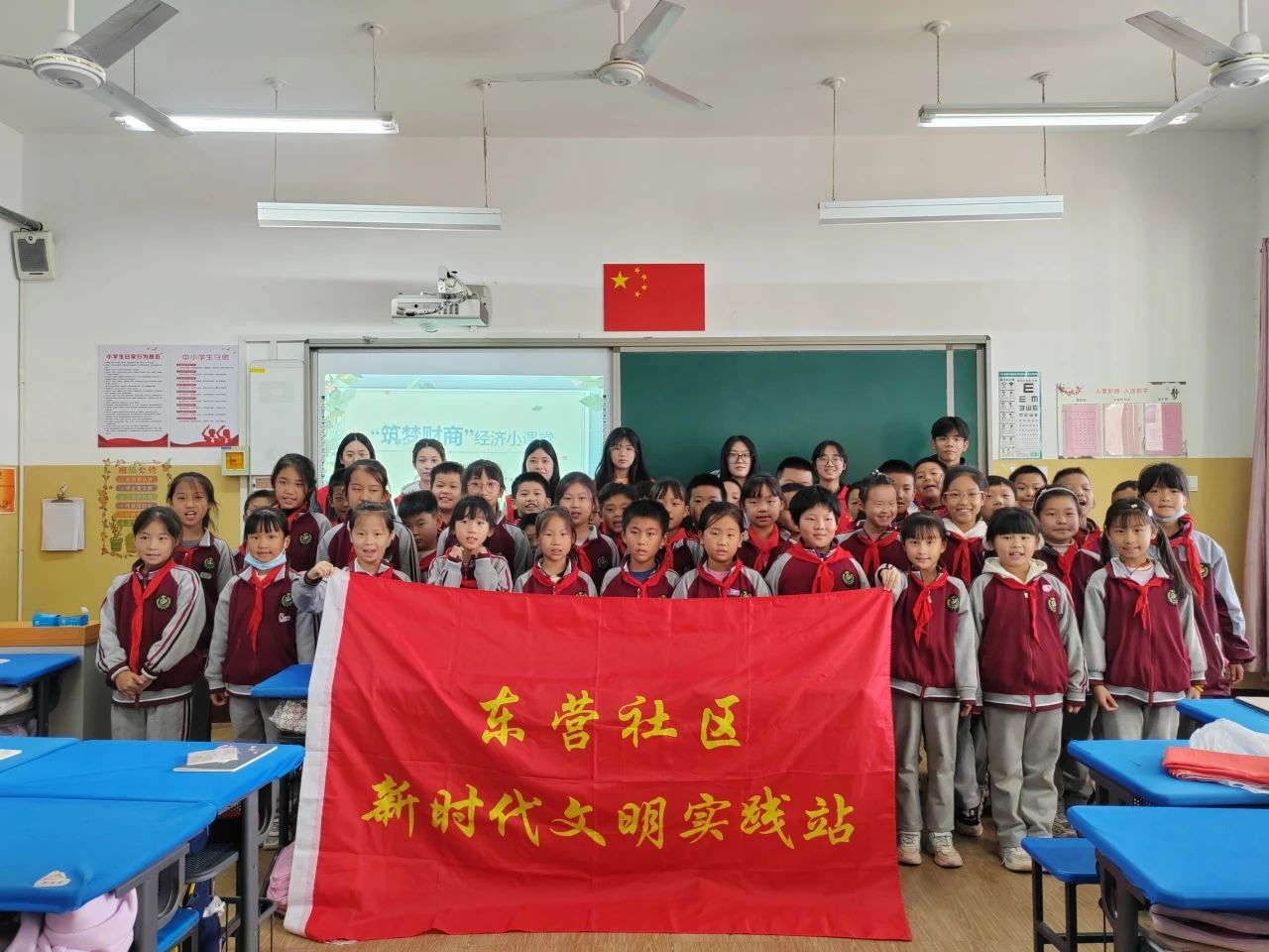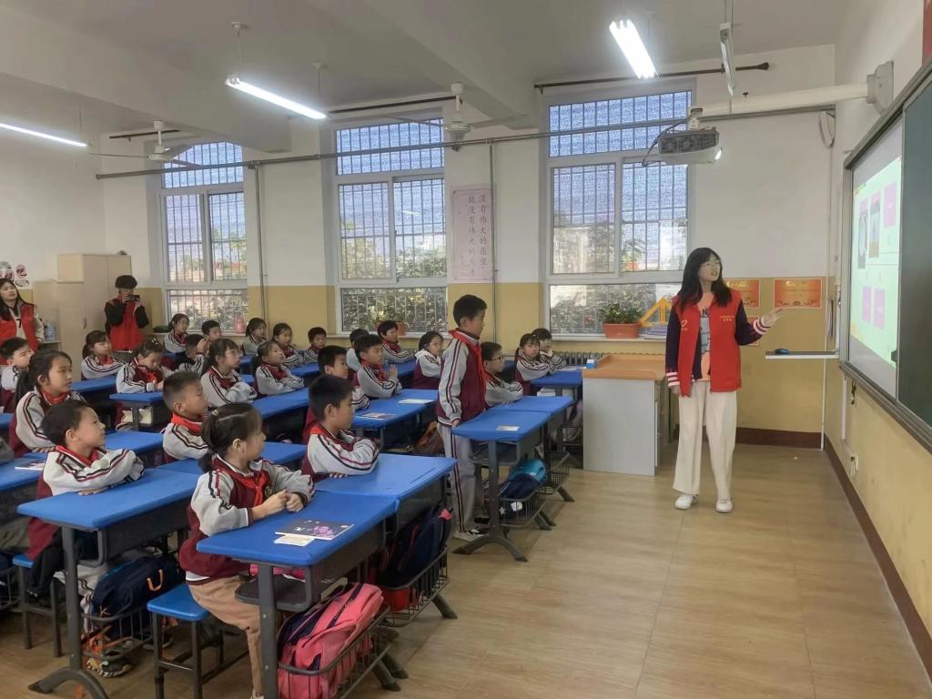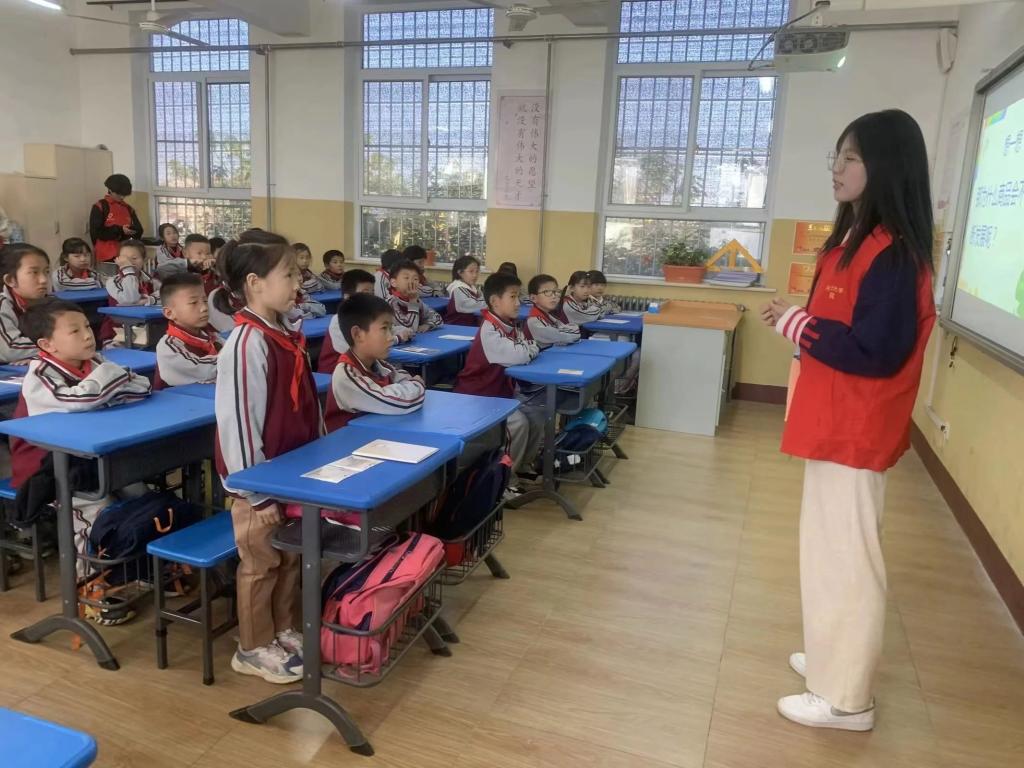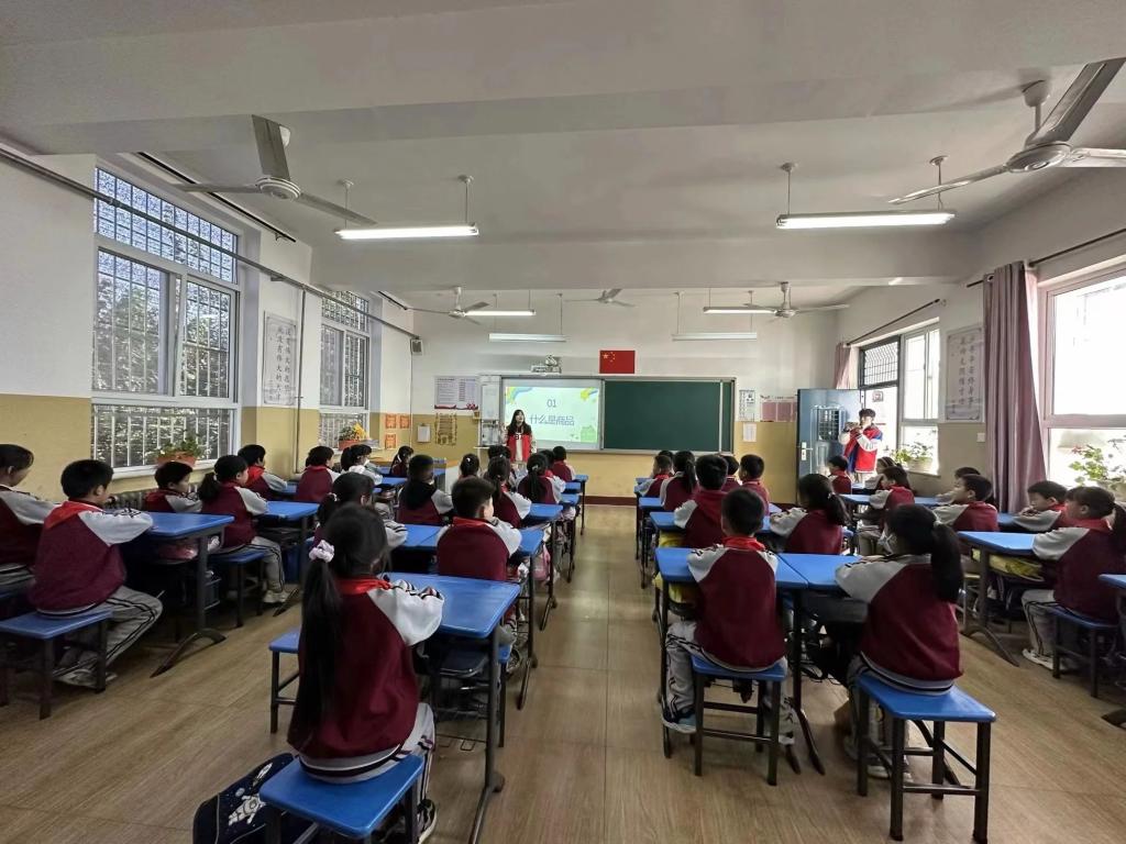 2023年11月6日,太阳集团tyc138商学院专职辅导员老师王小健、吴子雨与青年志愿者服务大队带领老员工志愿者教师团队来到了东营小学,开启了新一期的“筑梦财商”经济学小课堂。