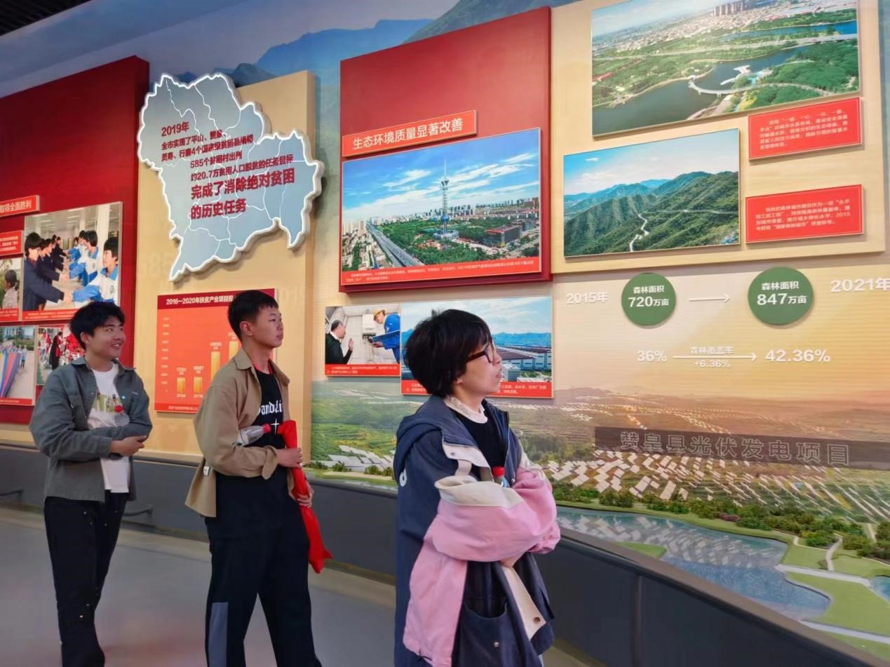 第三展厅为“筑梦石家庄”,该展厅讲述了新中国成立以来,石家庄人民在党的带领下进行新型现代化工业城市建设、城市改革方面奋发图强的发展历程和辉煌成就。同学们通过参观可以了解石家庄在新中国成立后各项产业的发展情况,尤其是石家庄工业对国家的贡献。
