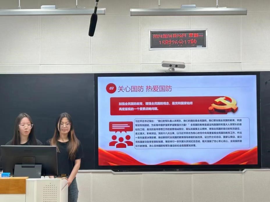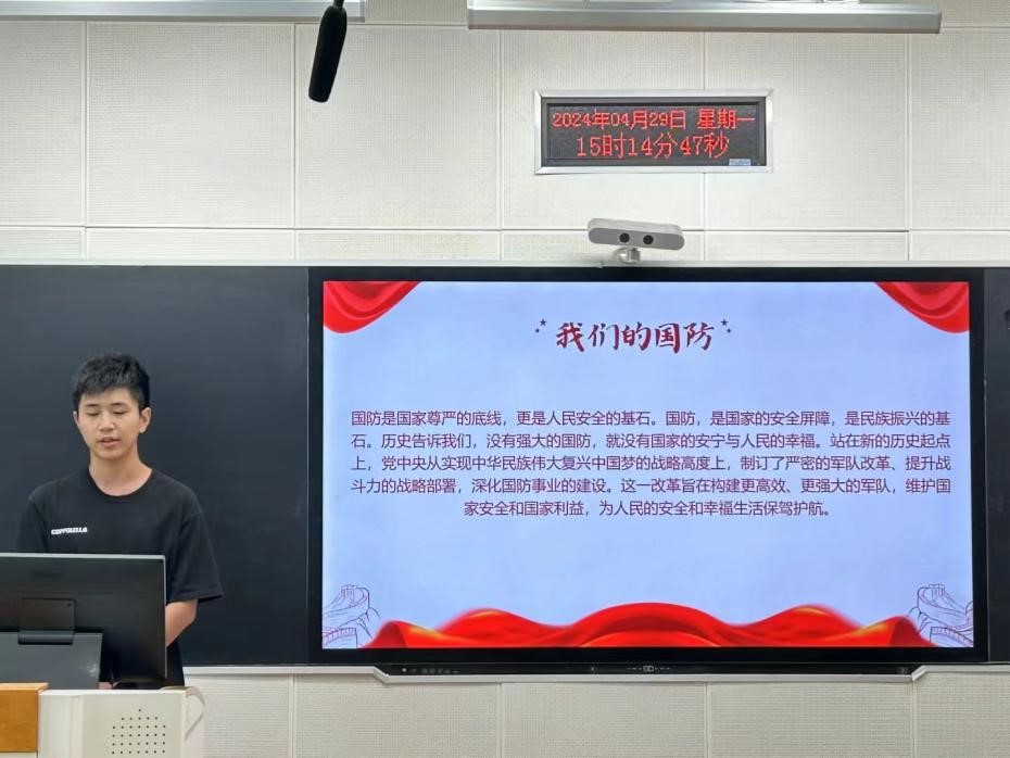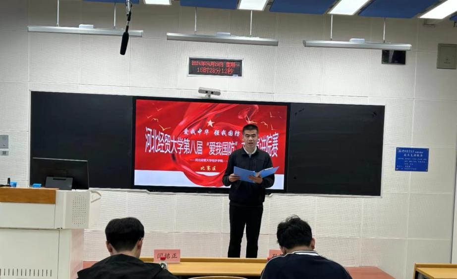 “国无防不立,民无兵不安”。为深入开展学习贯彻习近平新时代中国特色社会主义思想主题教育,贯彻落实党的二十大精神,深化全民国防教育,厚植员工国防观念,营造人人“关心国防、热爱国防、建设国防、保卫国防”的校园文化氛围,4月29日15点,太阳集团tyc138“爱我国防”演讲比赛院级选拔赛在北三教B110正式举行。本次比赛评审团由团委副书记孙禄坤、组织委员闫铭正、办公室刘靖航组成。