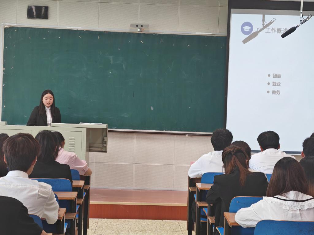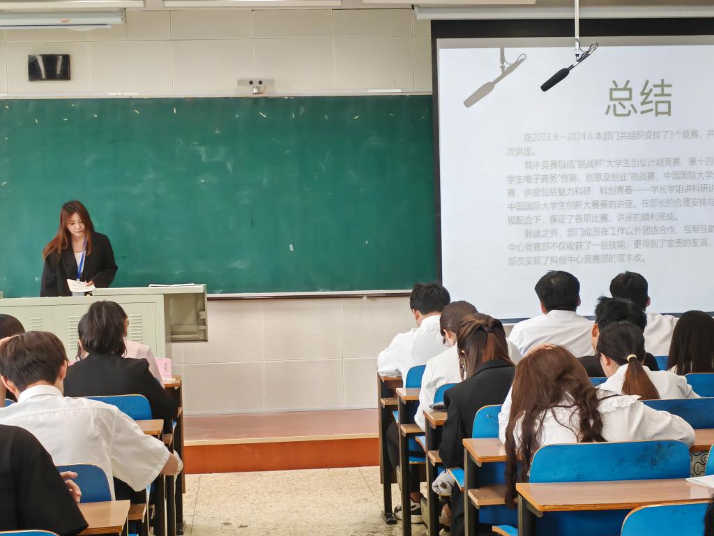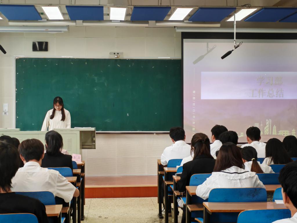 最后,吴子雨对本次会议进行总结,她对本学年各部门所做的工作以及获得的成就表示认可,同时指出了各部门之间沟通不够密切、问题解决不够及时等问题。她希望各部门同学能够以更加积极认真的心态投身到以后的工作中,并祝愿大家在工作与学习当中都能更好的发展,拥有更好的未来。