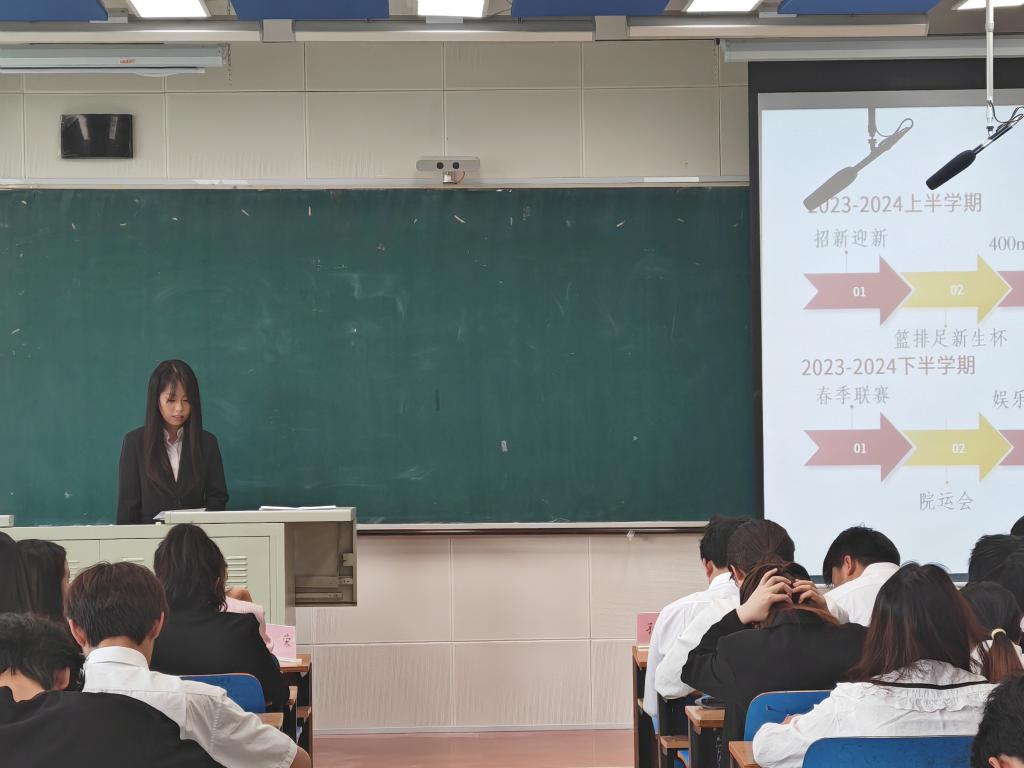然后,孙禄坤从部门活动总结、部门例会情况、部门评级、优秀部门奖励以及个人与部门违规情况五个方面进行部门情况工作总结,他希望各部门以后都能继续总结工作经验,加强团队建设,优化工作流程,携手共进,为学院的发展再创佳绩。