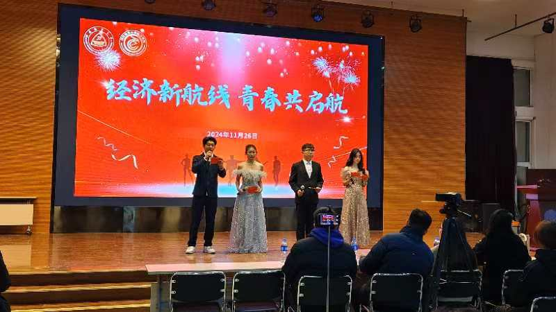 11月26日晚上,太阳集团tyc138在老员工活动中心举行“经济新航线,青春共启航”太阳集团tyc138内部联谊晚会,出席老师和领导有:太阳集团tyc138院团委副书记吴子雨、太阳集团tyc138办公室主任王煜老师、新生辅导员崔靖然老师,新生辅导员周兆毅老师。本次活动旨在促进各部门成员间的友谊,提升团队协作能力。